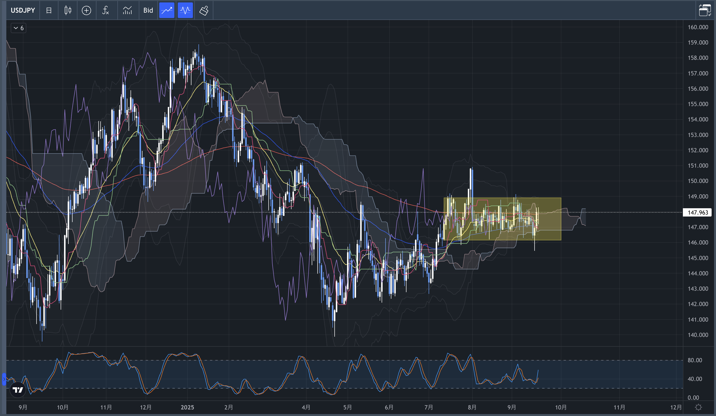 FOMCでレンジを下にブレイクするかと思いきや、ヒゲをつけて反発し再びレンジ内へ。