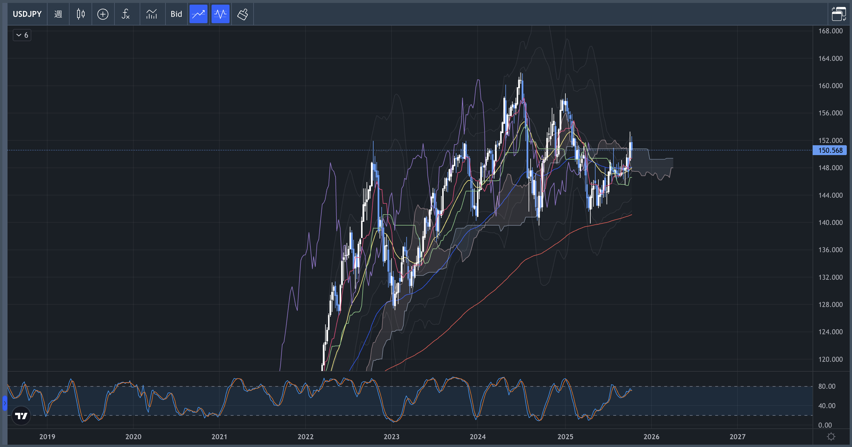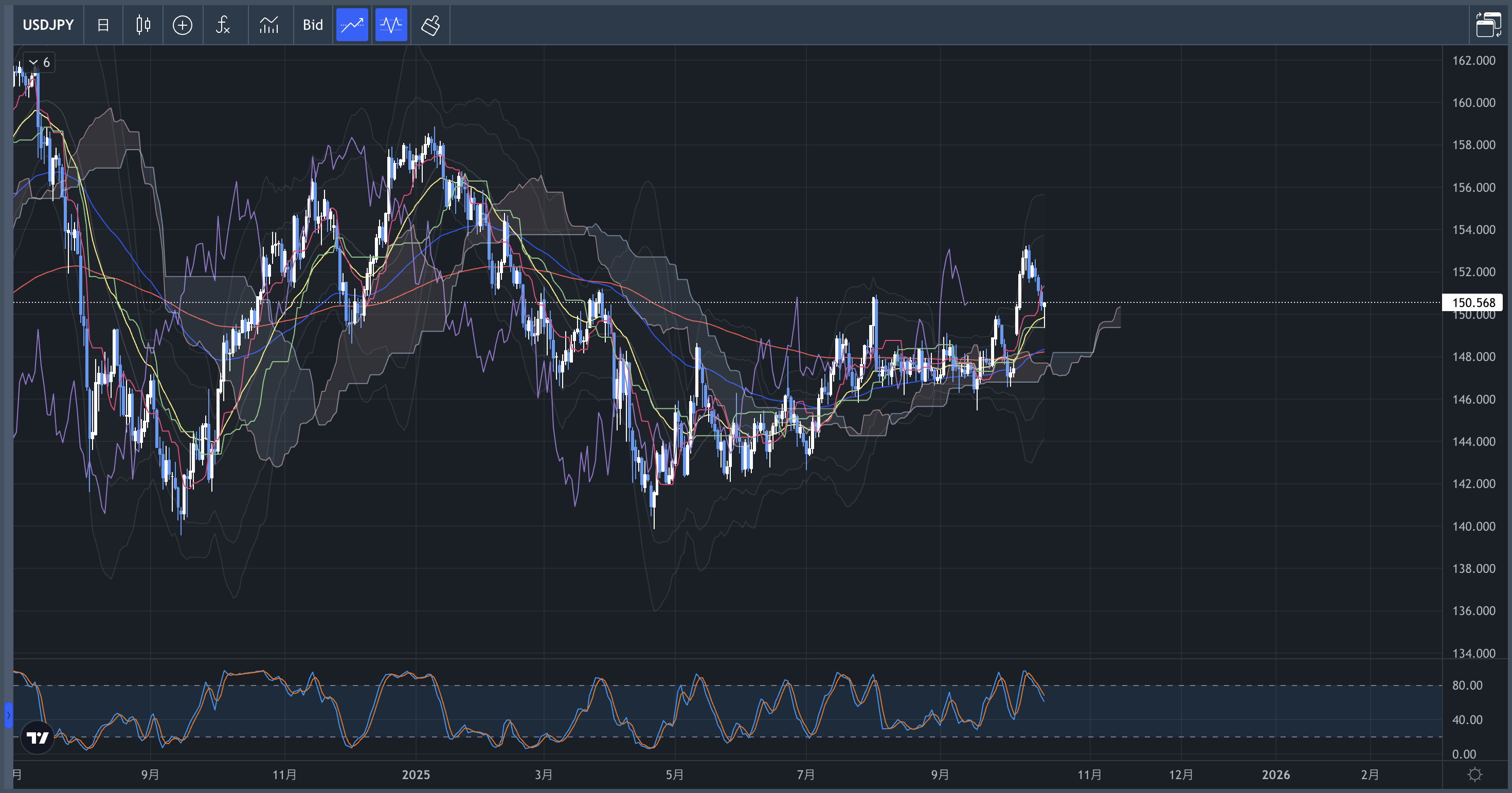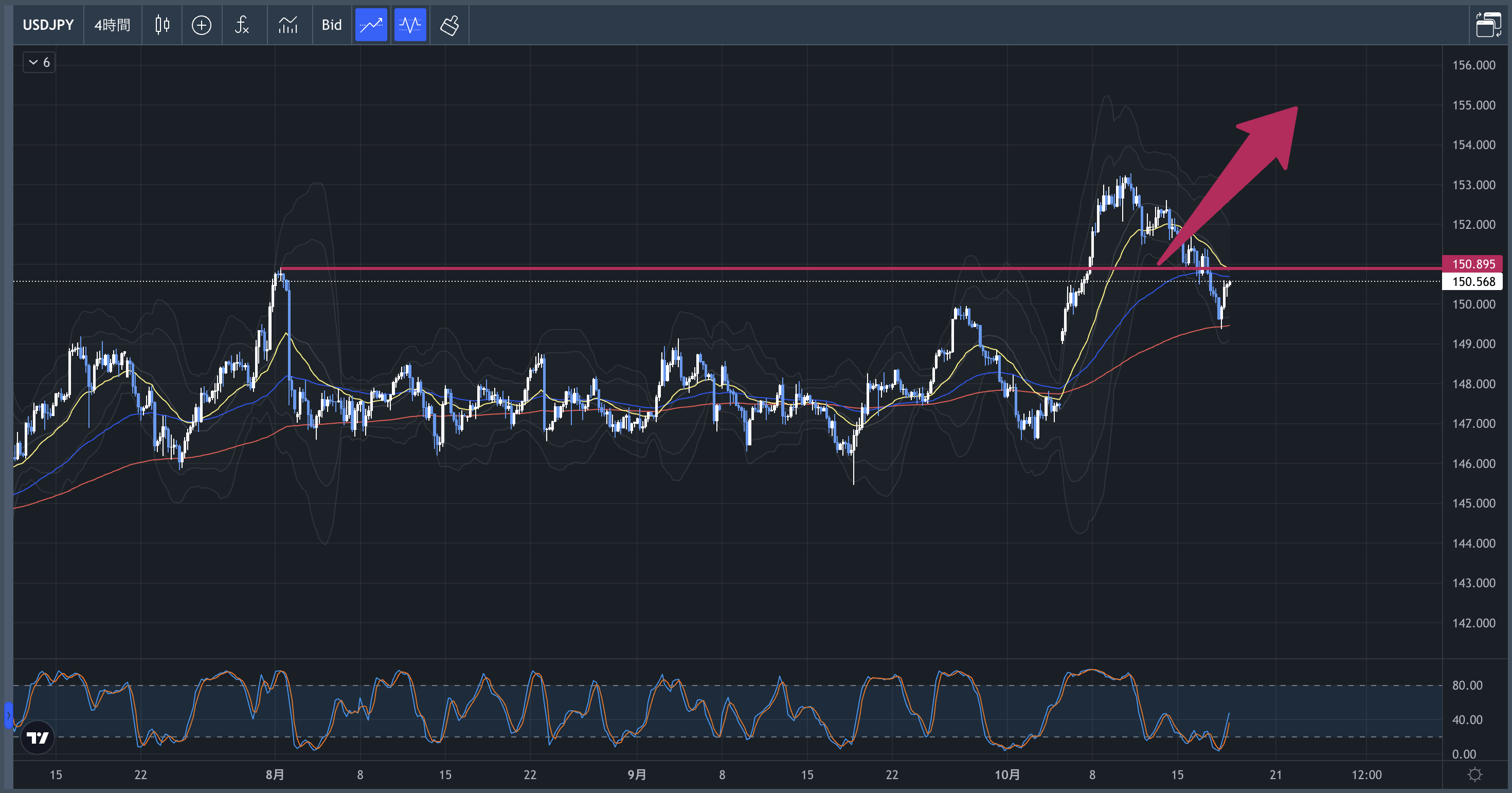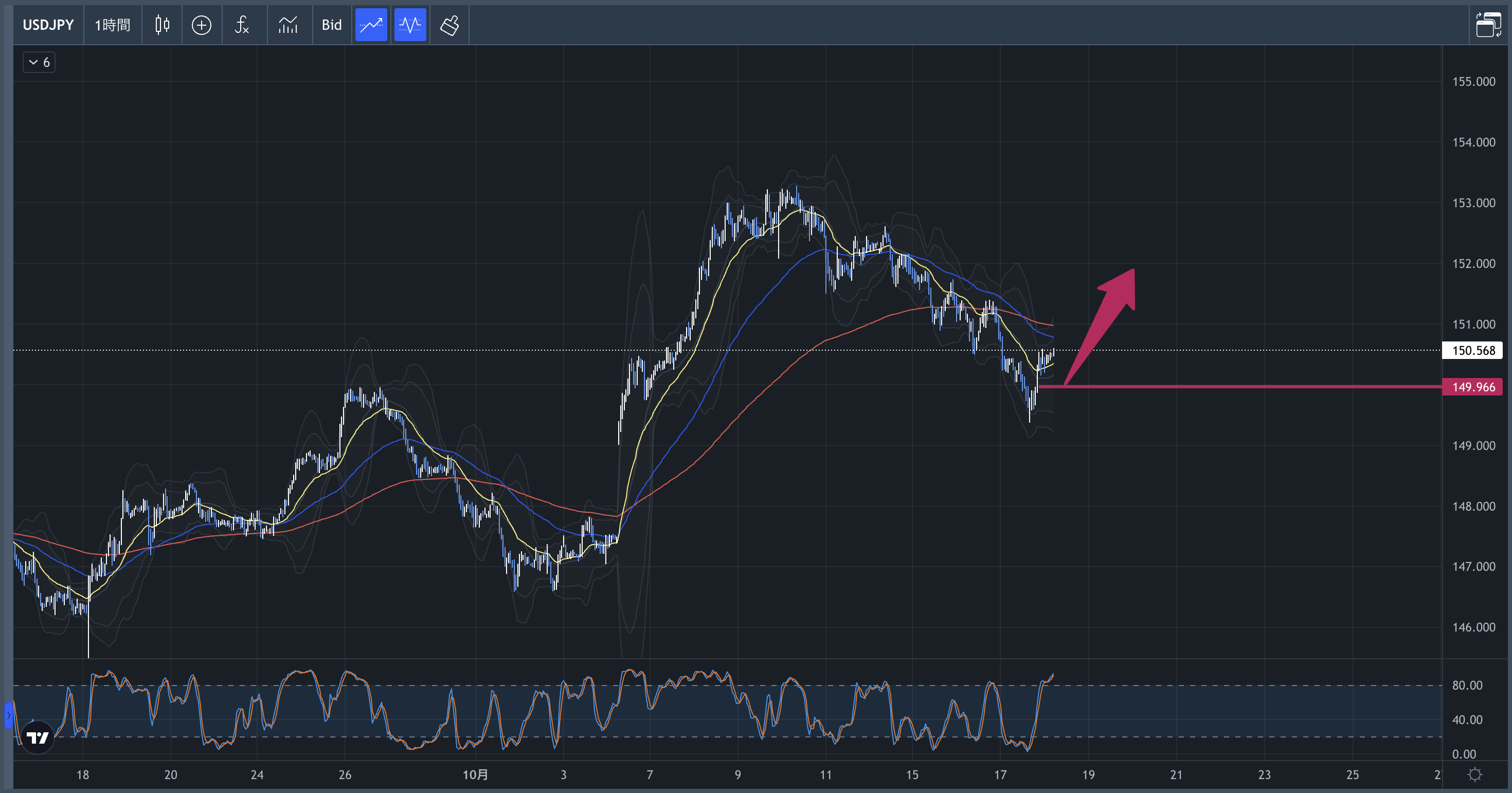 前回のブログで151円がサポートになると見てそこで押し目買いしたいと書きましたが、結果的にそのラインは割って149円半ばまで下がりました。